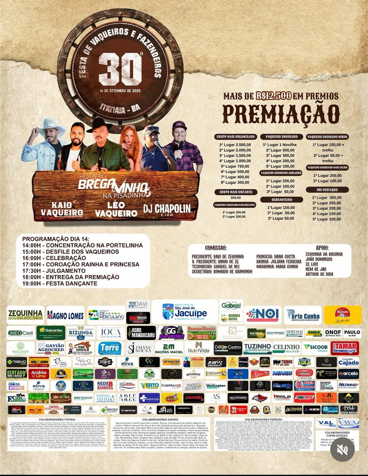Ao longo dessas três décadas, o evento se consolidou como símbolo da identidade local, celebrando o trabalho dos vaqueiros e fazendeiros, que com dedicação e coragem ajudam a construir a história da nossa região. A programação contará com missa, cavalgada, apresentações culturais e atrações musicais que prometem animar moradores e visitantes.