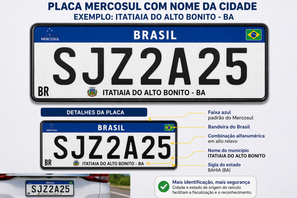 A possível mudança nas placas de veículos no Brasil pode impactar diretamente moradores de regiões como Itatiaia do Alto Bonito, localizado no município de São José do Jacuípe. Um novo projeto de lei prevê o retorno dos nomes das cidades e estados nas placas padrão Mercosul, o que pode facilitar a identificação dos veículos no dia a dia.