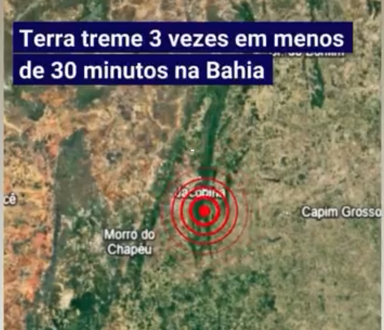 Três tremores de terra foram registrados próximo a Jacobina